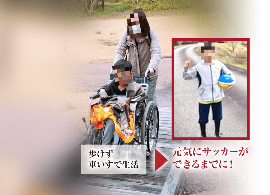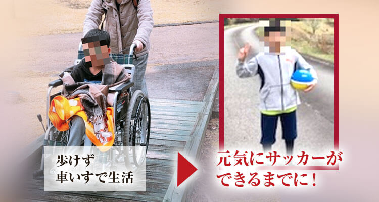 3~4ヶ月ほどの施術で車いすを卒業し、走れるまで改善!今は歩けなかった頃が嘘のように、サッカーやダンスに熱中しています!